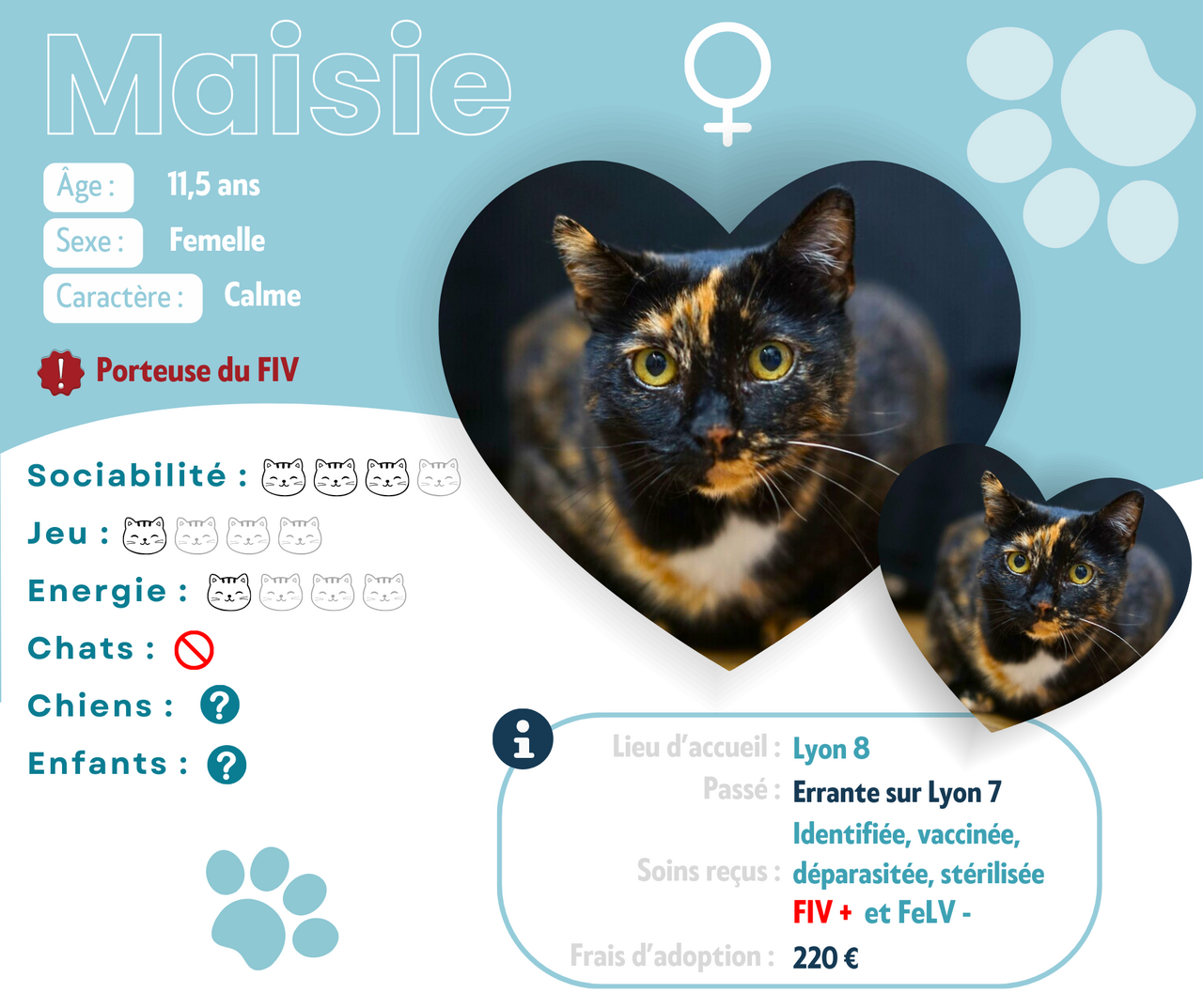 Moi c’est Maisie. Je suis née aux alentours du 01/05/2014.
