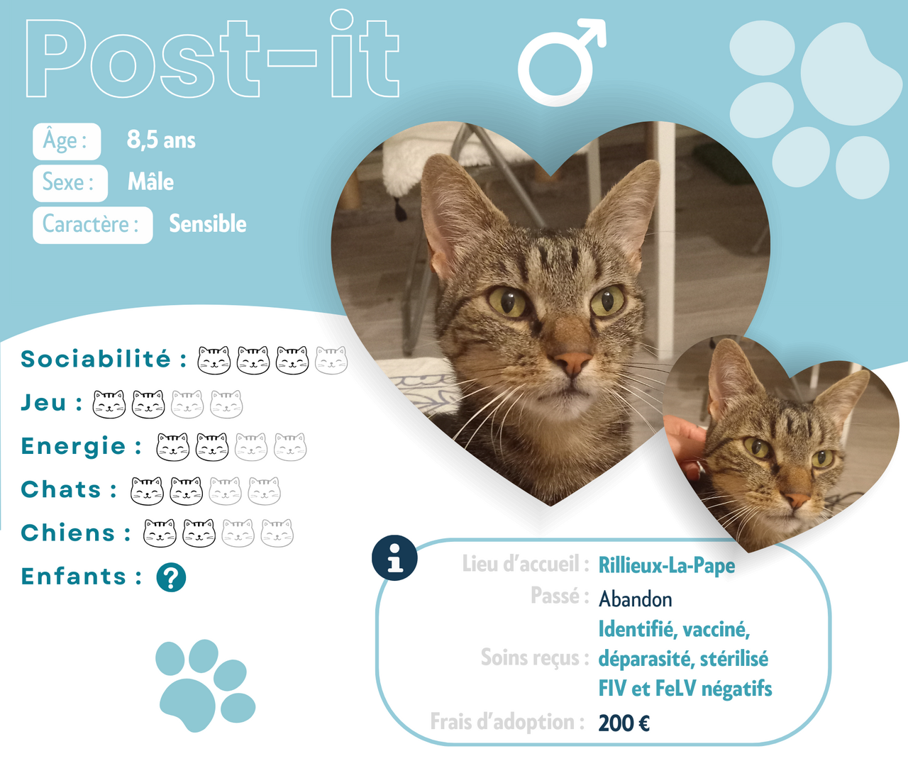 Je suis un chat affectueux et sensible. J’aime avoir de l’attention et être choyé, ce que je n’ai pas trop eu jusqu’à présent. Du coup, je préfère être l’unique animal de la famille pour être chouchouté !