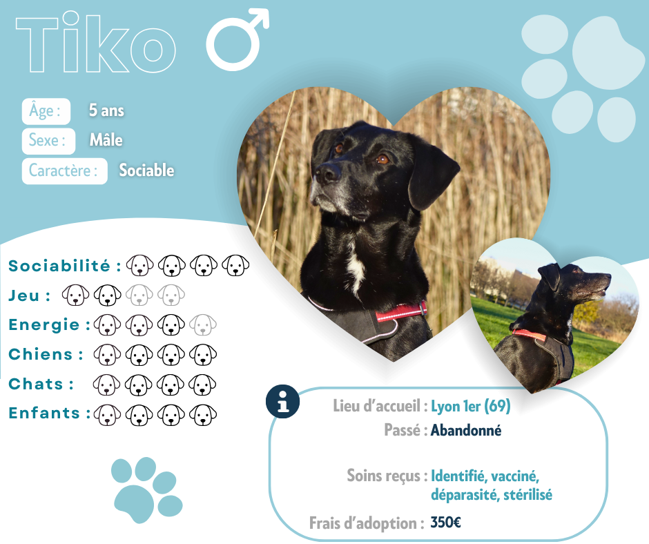 Je m’appelle Tiko. Je suis un beau berger de presque 5 ans à la recherche de ma famille pour la vie.